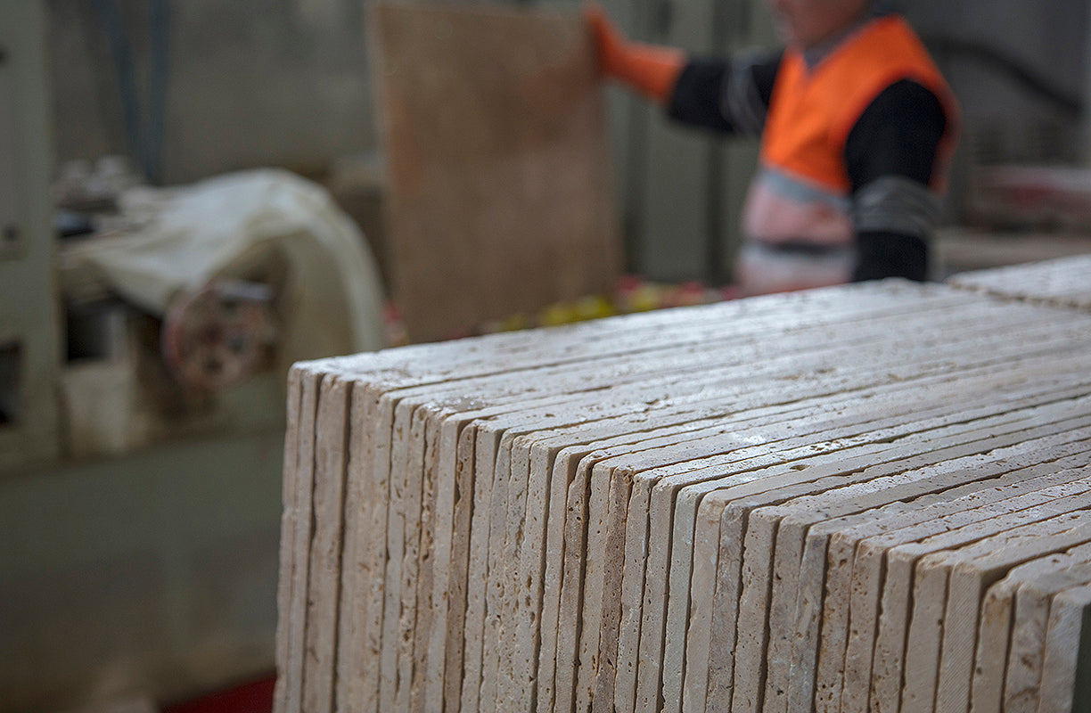 Zu diesem Zeitpunkt beginnen unsere Partner – erfahrene Fabriken mit Respekt für die Umwelt und handwerklichem Können – mit der Gewinnung von Travertin aus ausgewählten Steinbrüchen. Durch sorgfältige Verarbeitung wird der Travertinstein zu exklusiven Platten veredelt, die später zur Herstellung von Travertintischen und anderen Natursteinmöbeln verwendet werden. Dabei wird alles mit Fokus auf Qualität und Nachhaltigkeit durchgeführt.